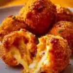 Serve the Buffalo Chicken Bacon Mozzarella Bombs hot and fresh from the fryer. They are great as a snack or appetizer. You can also provide extra Buffalo sauce or ranch dressing for dipping, which enhances the flavor.