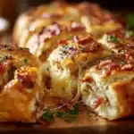 This Chicken Bacon Ranch Stromboli is simple to make and full of flavor. It uses rotisserie chicken, crispy bacon, cheese, and ranch dressing all wrapped in thin crust dough. If you like quick chicken snacks, try a similar idea with garlic butter chicken bites for another fast meal.
