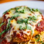 A classic homemade chicken parmesan with juicy chicken, savory marinara, and melted cheeses, perfect for family gatherings.
